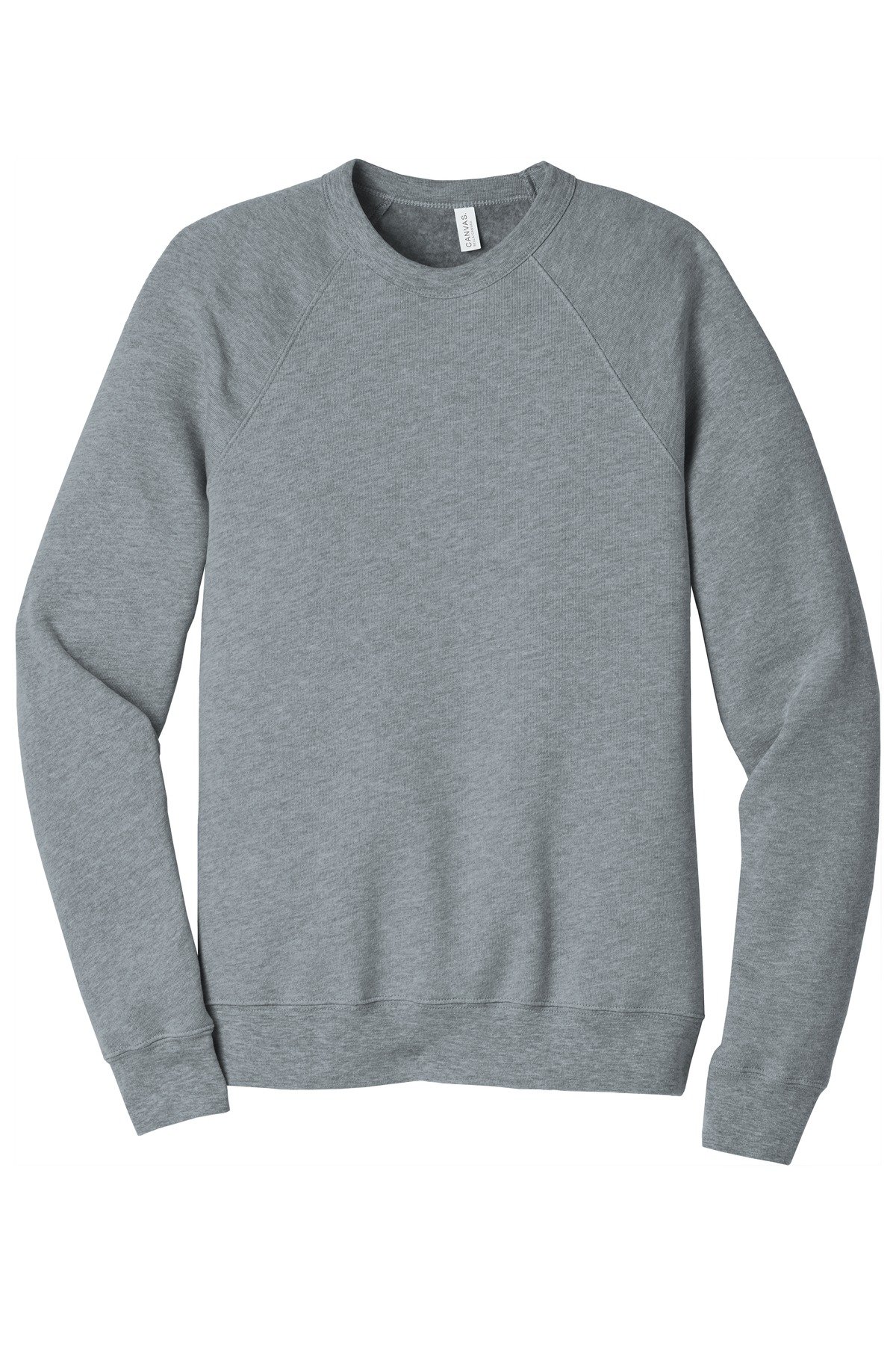 Retail fit Tear-away label Raglan sleeves Side seamed Rib knit cuffs and hem Solid Colors and Heather Colors: 8-ounce, 52/48 Airlume combed and ring spun cotton/poly fleece, 32 singles Triblend Colors: 8-ounce, 50/37.5/12.5 poly/Airlume combed and ring spun cotton/rayon, 32 singles Athletic Heather: 8-ounce, 90/10 Airlume combed and ring spun cotton/poly fleece, 32 singles