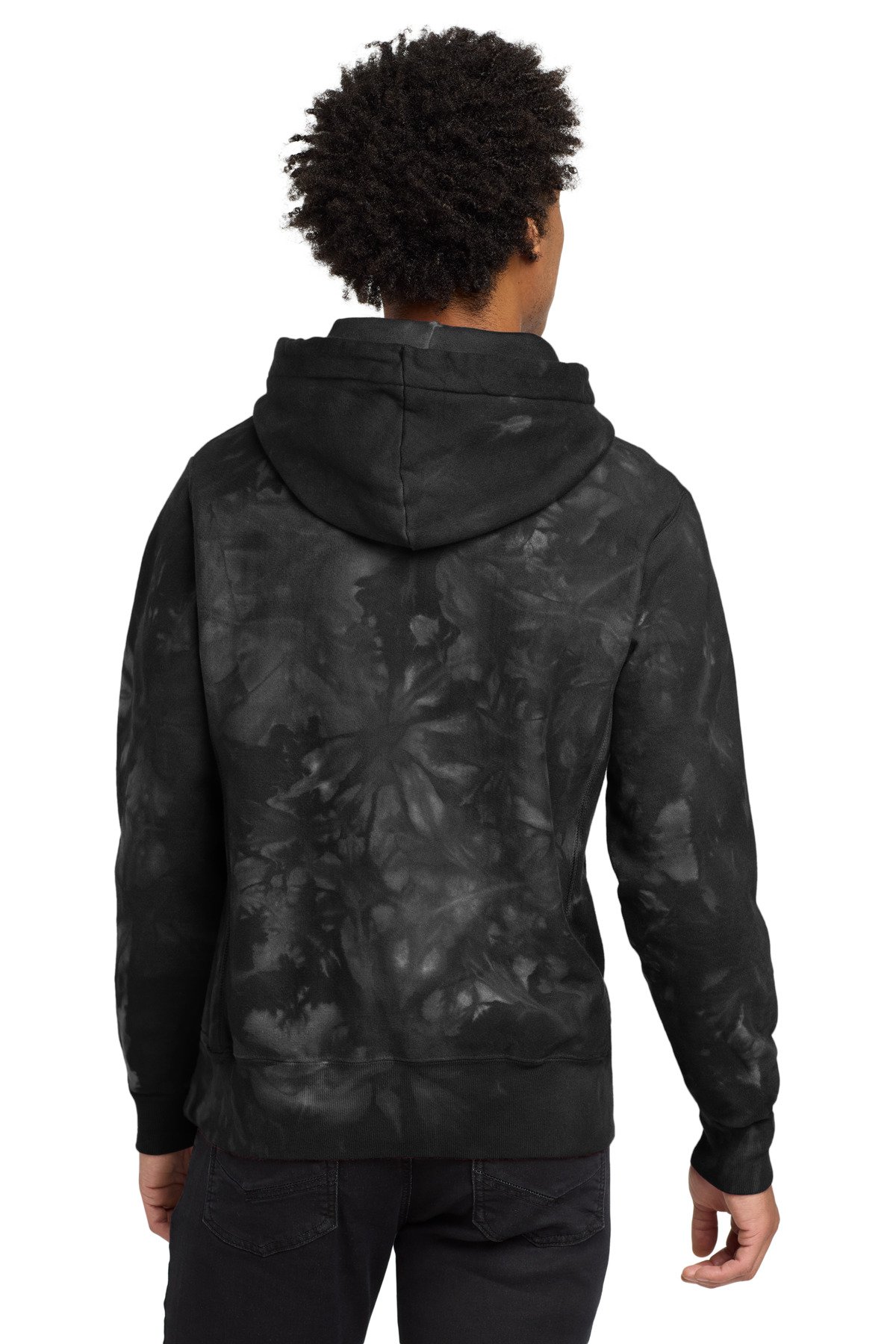 12-ounce, 82/18 cotton/poly fleece Reverse Weave cross-grain cut resists shrinkage Unique scrunch-dye, tie-dye pattern Two-ply hood with dyed-to-match drawcords 1×1 rib knit side panels, sleeve cuffs and hem Front pouch pocket Embroidered Champion- C logo at left cuff Woven back neck label