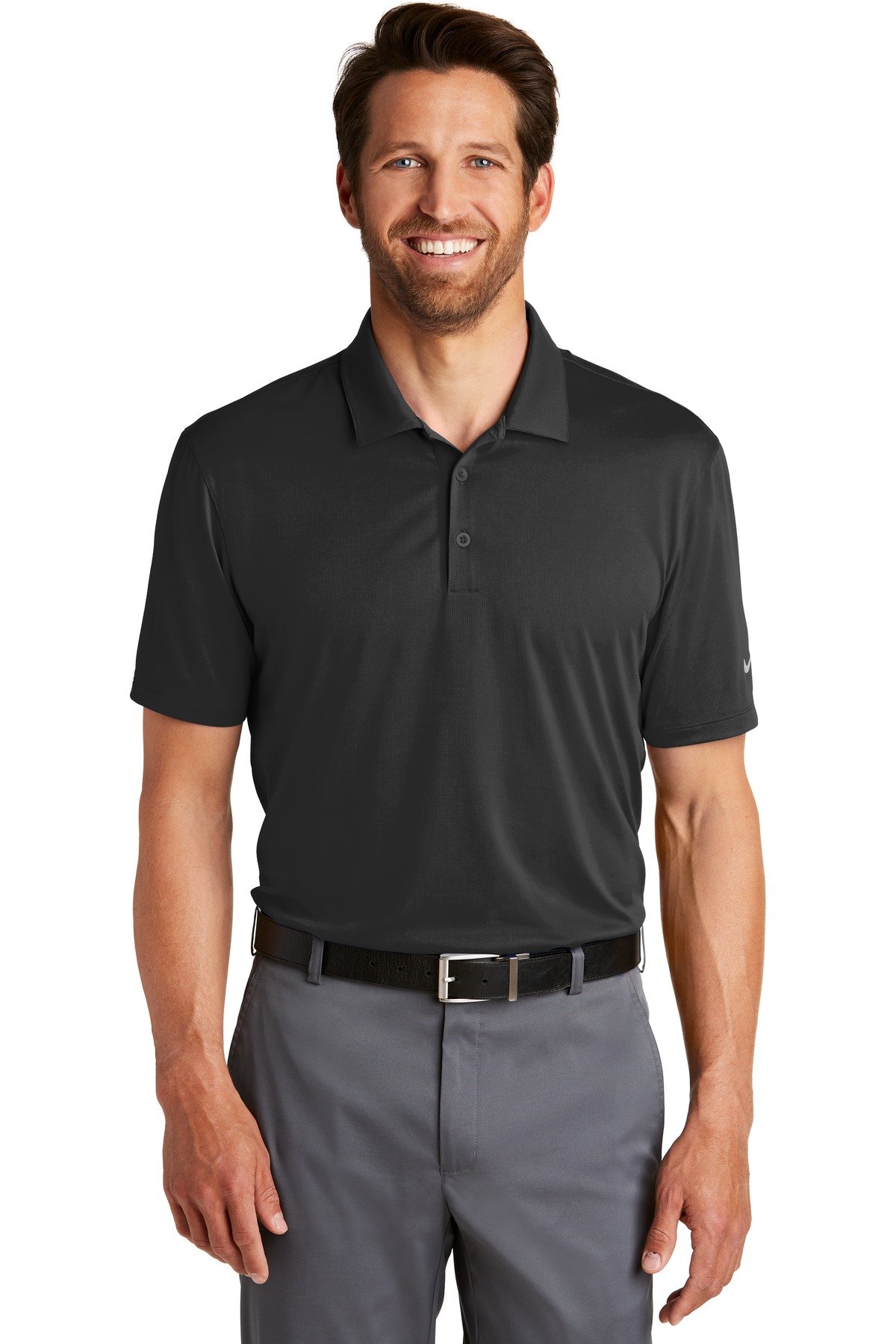 A modern tribute to the unparalleled Nikeheritage, this sophisticated polo has a subtle, grid-like texture and is engineered with Dri-FIT moisture management technology Design details include a self-fabric collar, three-button placket with dyed-to-match buttons and open hem sleeves The contrast heat transfer Swoosh design trademark is on the left sleeve Made of 4.2-ounce, 100% polyester Dri-FIT fabric.