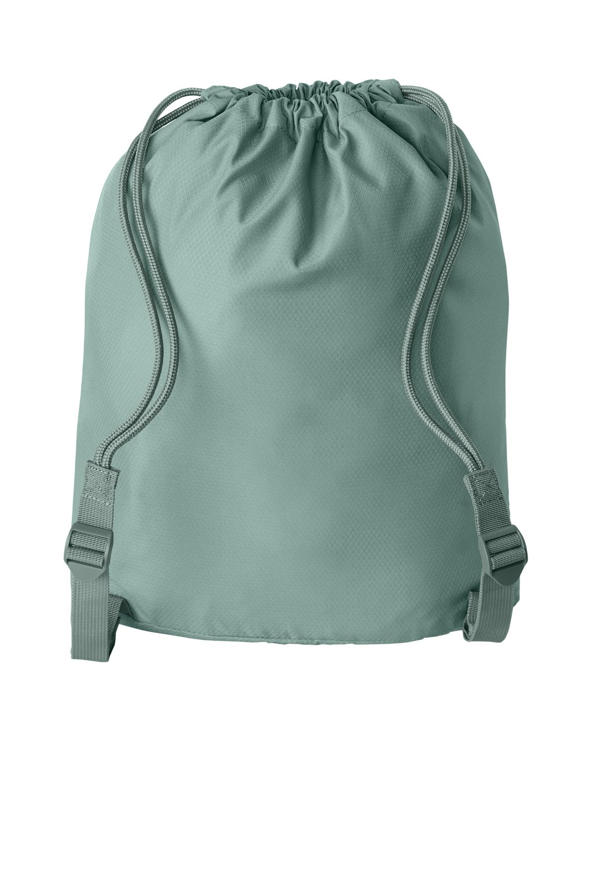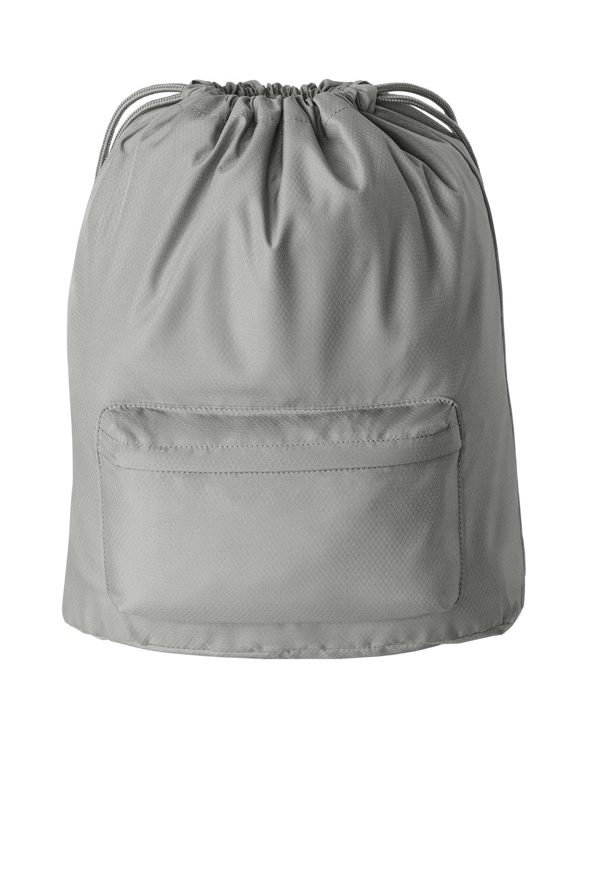 150D matte diamond polyester Dyed-to-match drawcord closure Adjustable dyed-to-match web straps Front zippered pocket Dyed-to-match hardware Bottom base helps cinch remain upright when placed on the ground Dimensions: 18″h x 13.75″w x 6.5″d Capacity: 1,324.5 cu. in./22 L Weight: 0.4 lbs./0.18 kg Note: Bags not intended for use by children 12 and under.