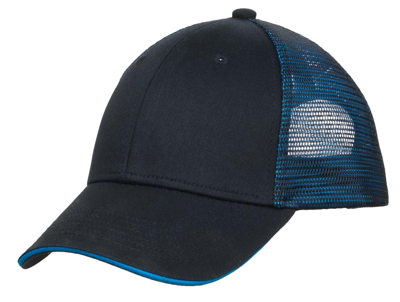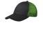 Our two-tone mesh design makes this breathable cap stand out. The front panels are black twill, while the mid and back panels layer color under the mesh for an iridescent effect. Fabric: 100% cotton twill front panels; 100% polyester mesh mid and back panels Structure: Structured Profile: Mid Closure: 7-position adjustable snap