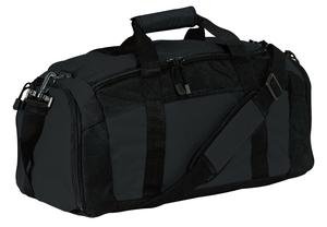 From warm-up to cool-down, this budget-friendly bag holds everything you need to work out. 600 denier polyester canvas, 210 denier polyester lining Fully lined, zippered main compartment Front pocket and zippered end pocket Separate zippered end pouch for pool gear or shoes Adjustable, detachable, padded shoulder strap Dimensions: 10.75″ h x 20.75″ w x 9″ d; Approx. 2,008 cubic inches Note: Bags not intended for use by children 12 and under. Includes a California Prop 65 and social responsibility hangtag.