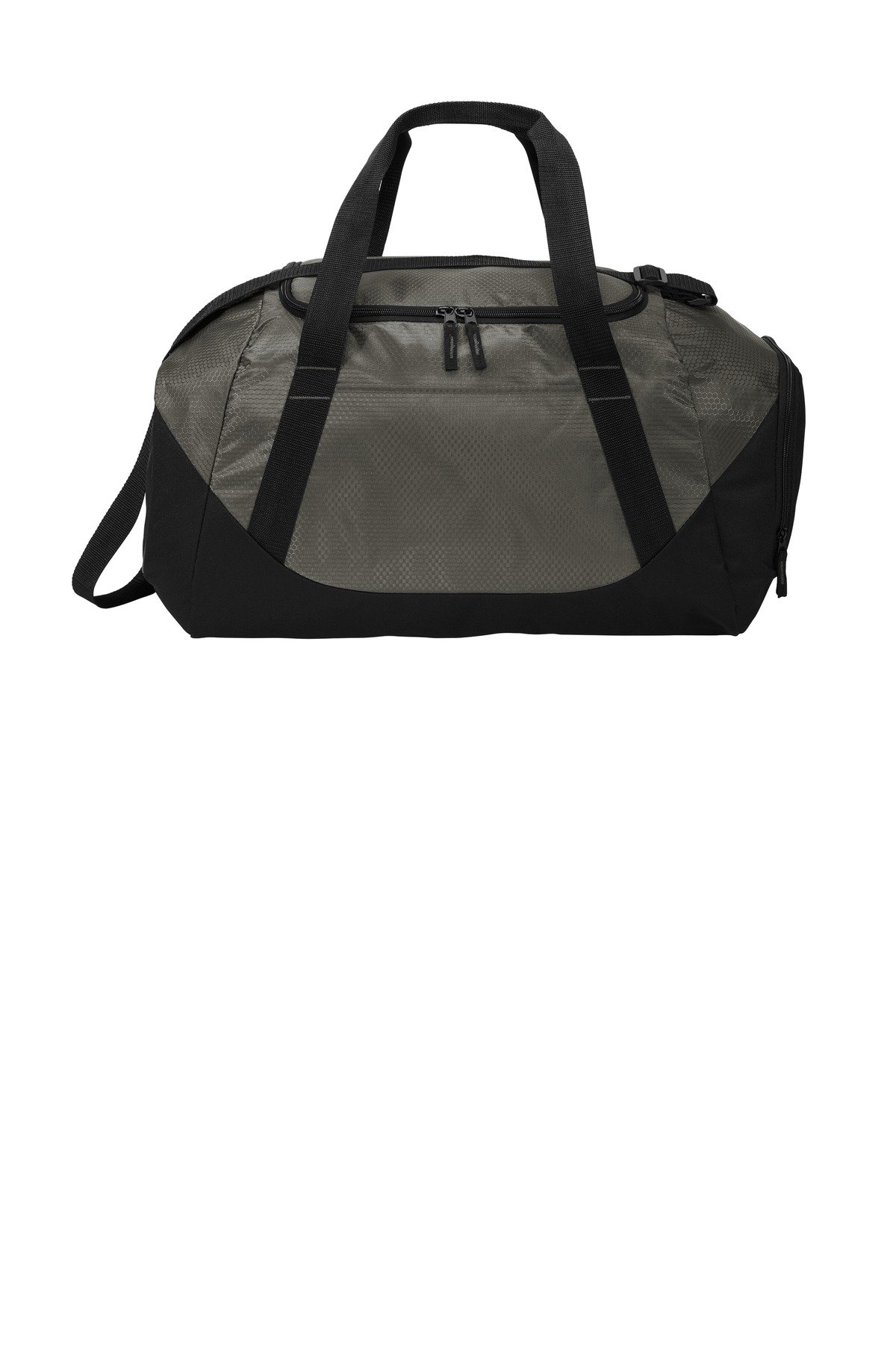 With its spacious main compartment, ventilated shoe compartment and sporty look, this competitively-priced duffel is sure to be a hit with athletes and teams. 420 denier honeycomb polyester, 600 denier polyester Large main compartment Zippered end shoe compartment with mesh window for breathability Front slip pocket for easy decoration Web carrying handles with contrast stitching Adjustable shoulder strap Dimensions: 12.5″h x 19.75″w x 12″d; Approx. 2,962 cubic inches Note: Bags not intended for use by children 12 and under.
